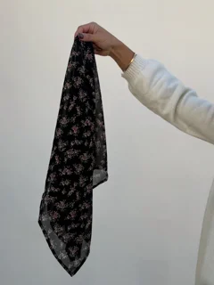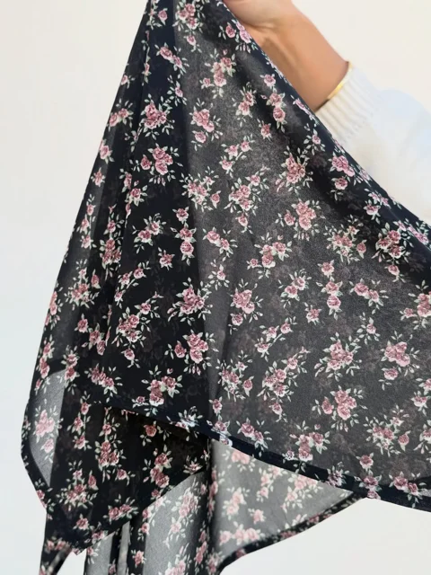 مینی اسکارف مشکی گل صورتی